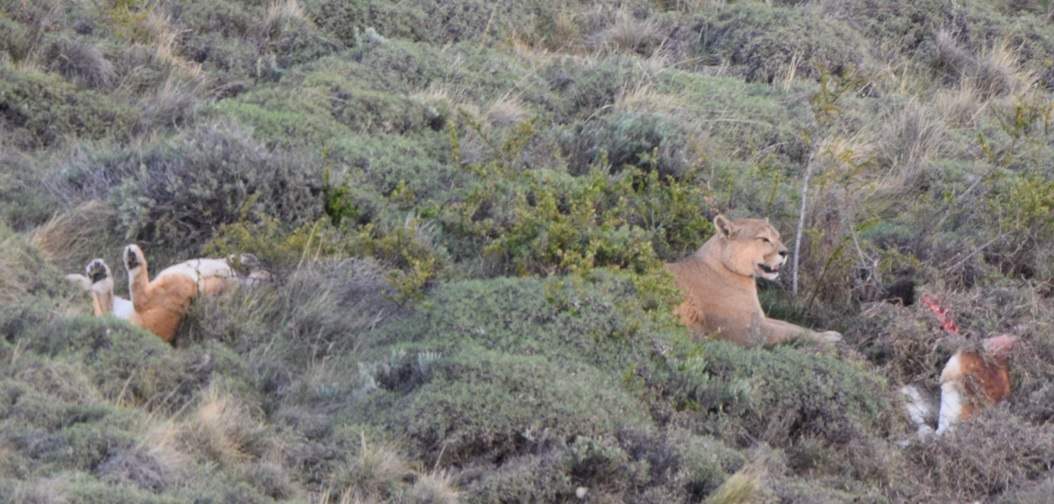 During one of my visits, right after completing the W Trek, José gave me a ride back to Puerto Natales. On the way, we suddenly saw a family of pumas resting near the bushes. It was amazing!